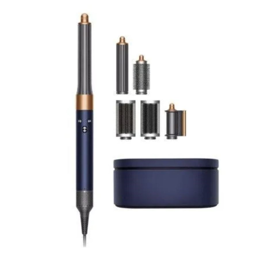 Мультистайлер Dyson Airwrap Complete Long HS05 Prussian Blue/Rich Cooper (Берлинская лазурь/Медь) имеет три скорости, три температурных режима и мощность 1300 Вт. В комплекте 6 насадок и кейс для хранения.